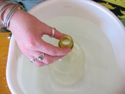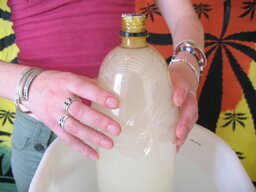 - Push the bottle into the bucket so that it fills up with water.