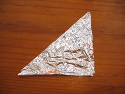 - Cut a square of tin-foil and fold it into a triangle (it should be 4 layers thick). Then twist the foil around your finger to make a cone/ bowl shape and cut away any excess. Pierce the base of it a few times with a pin.