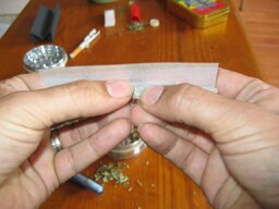 - Pick up the paper with everything in it and begin to roll from the middle outwards. Your thumbs should roll over the top of your joint and your index and forefingers should support the pressure underneath. You may need to do this a few times until you feel that the mix is fairly firm inside the paper. Be careful not to make your joint too tight though or you’ll end up blue in the face trying to toke on it. On the flip side – too loose and it will burn too